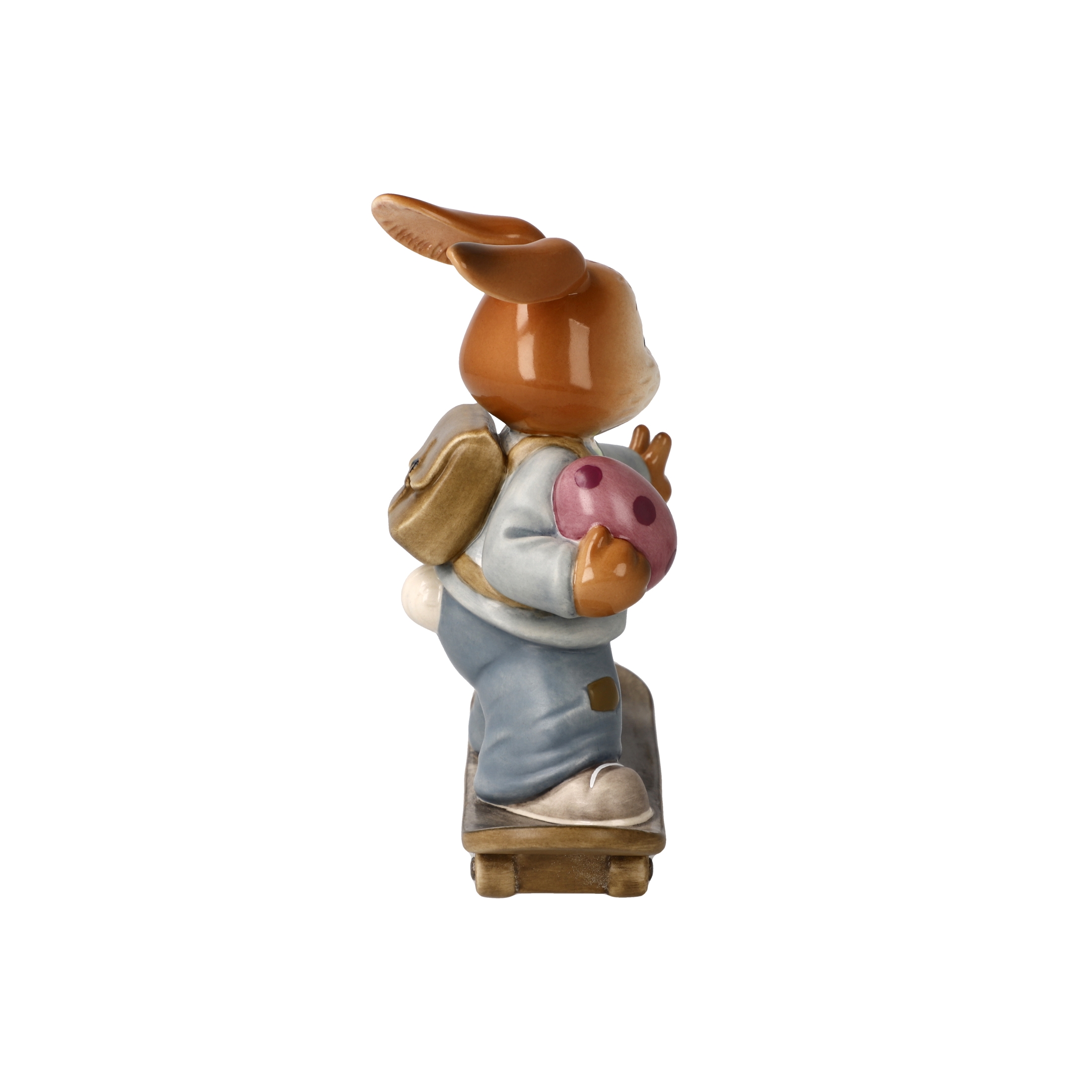 Juhu! Der letzte Schultag vor den Ferien ist zu Ende! Der Hasenjunge schnappt sich sein Skateboard und eilt voller Vorfreude auf die bevorstehende Freizeit nach Hause. Gleich ist er mit seinen Freunden zum gemeinsamen Skaten im Park verabredet.