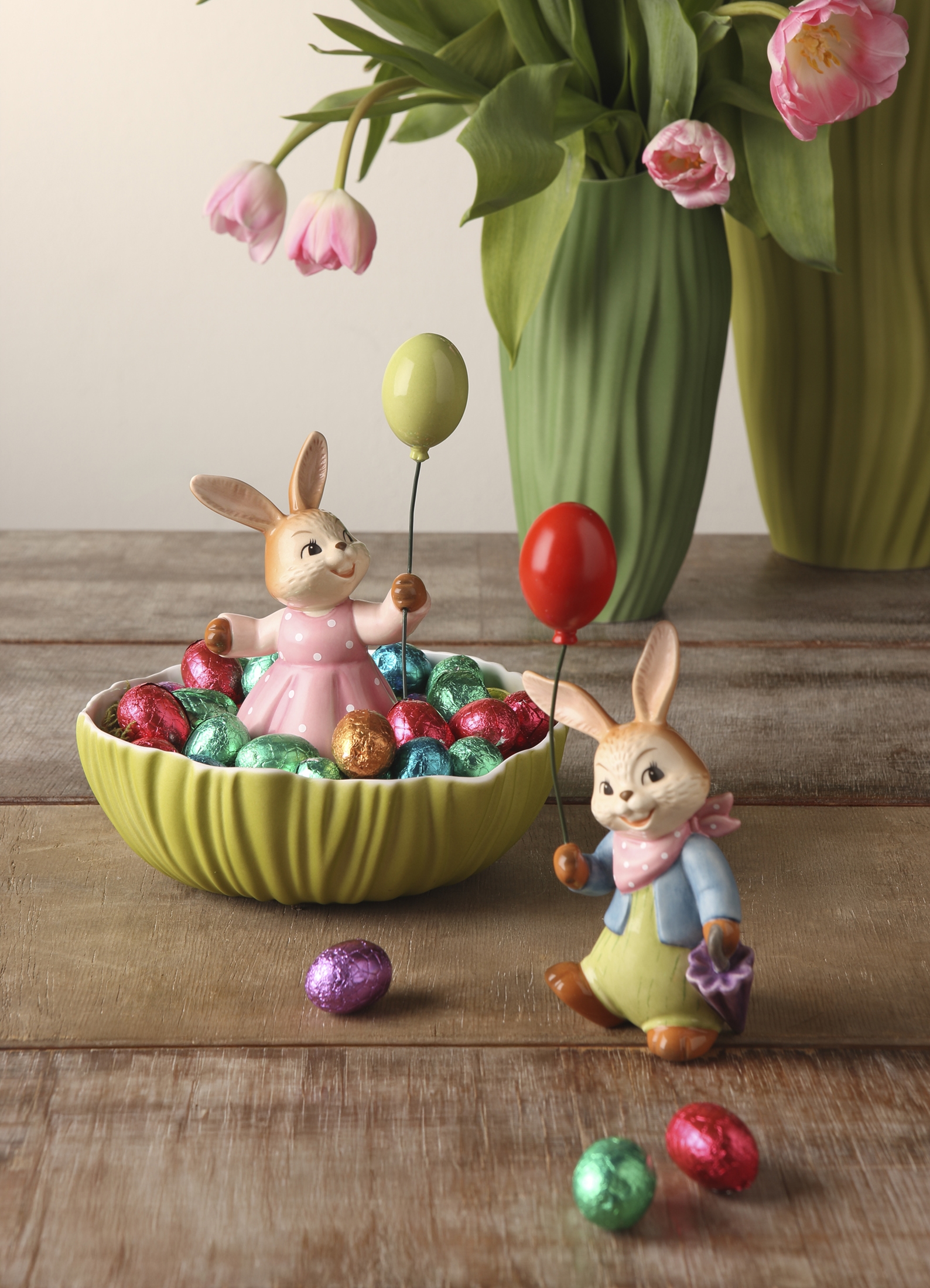 Mit seinem Luftballon in der Pfote steht dieser kleine Hase bereit zum Gratulieren. Ob zu Ostern, zum Geburtstag oder einfach so – diese moderne Dekofigur bringt Freude, Leichtigkeit und einen Hauch Feierlaune in das Zuhause.