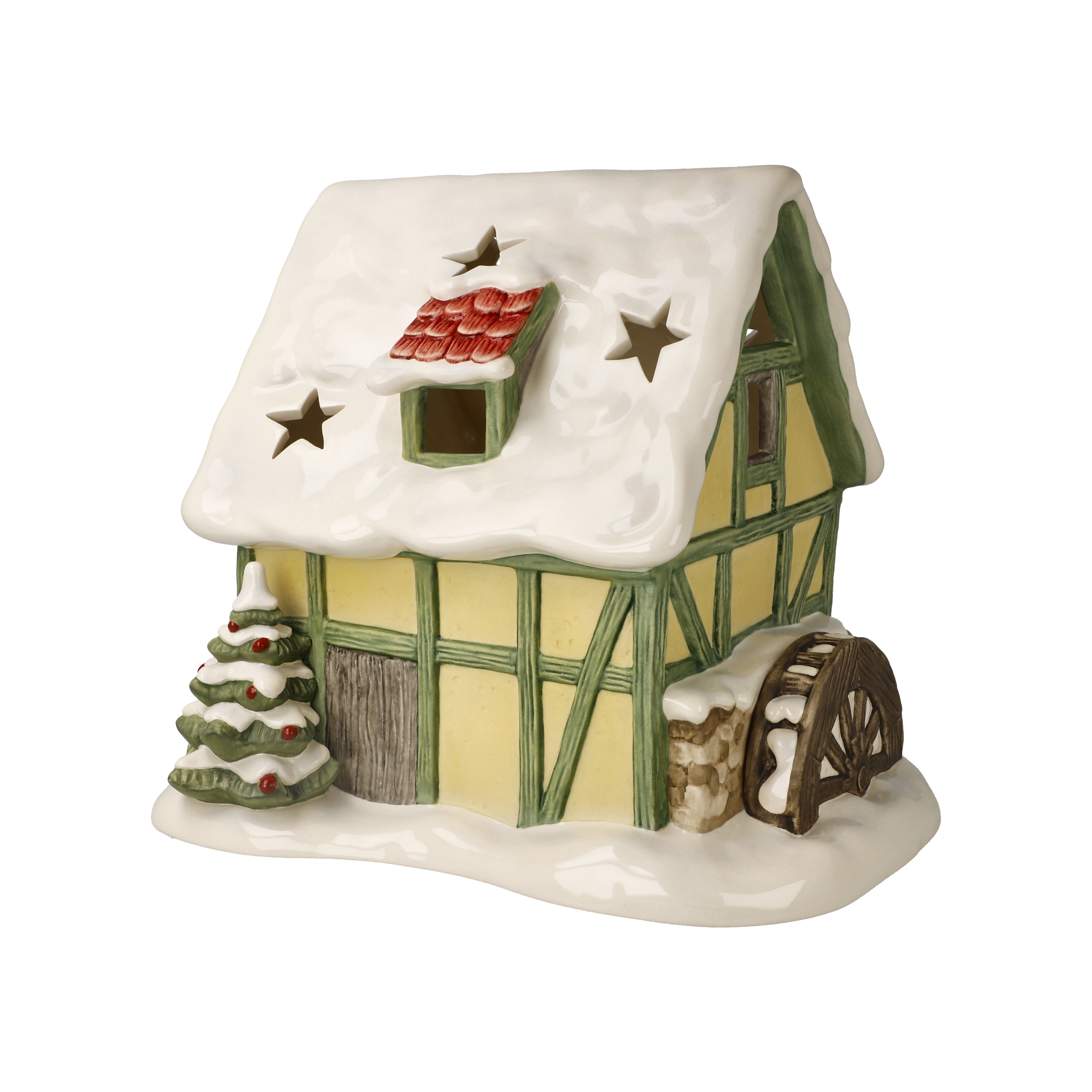 Die verschneite Wassermühle ruht in der eisigen Winterzeit, bis sie im Frühjahr wieder zum Leben erwacht und sich das Rad wieder dreht.