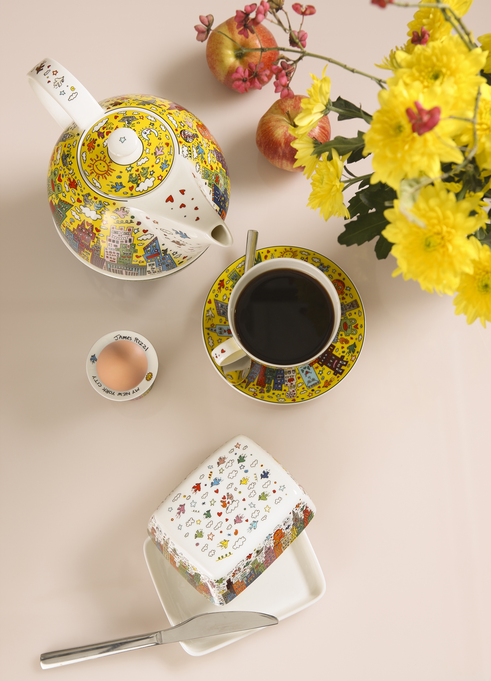 Diese Teekanne mit der New Yorker Skyline ist nicht nur funktional, sondern ein echtes Kunstwerk für den Alltag. Das fröhliche, lebendige Motiv zeigt Rizzis charakteristische Interpretation der weltbekannten Metropole und ihrem pulsierenden Leben.