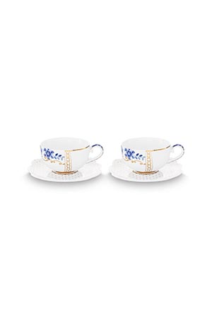 Pip Studio 2er Set Tea Cup & Saucers Royal Flowers Porzellan Tee Kaffee Tasse mit Untertasse 120 ml in dekorativer Geschenkverpackung