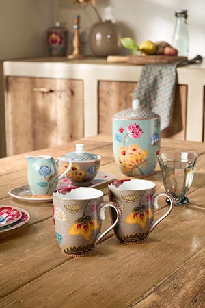 Das PIP STUDIO Blooming Tales Fantasy Khaki Large Henkelbecher 0,365l Set2 steht für großzügigen Trinkgenuss in elegantem Design. Die zwei Becher sind mit einem detailreichen floralen Muster in Khaki verziert und verleihen jeder Kaffeepause eine stilvolle Note. Gefertigt aus hochwertigem Porzellan überzeugen sie durch ihre glatte Oberfläche und angenehme Haptik. Mit einem Fassungsvermögen von 365 ml bieten die Becher ausreichend Platz für Kaffee, Tee oder Kakao. Der formschöne Henkel sorgt für sicheren Halt und hohen Komfort im Alltag.