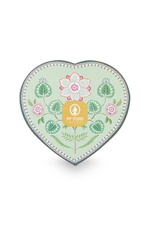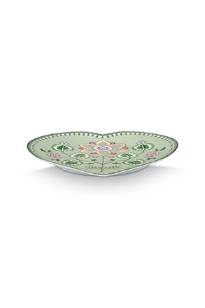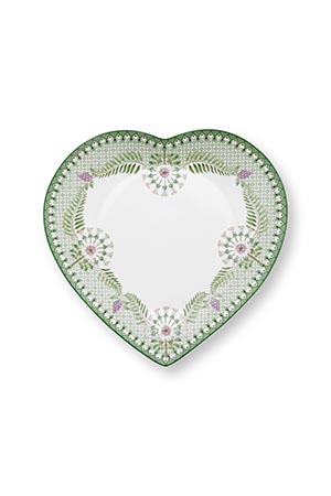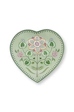 Pip Studio Set/2 Heart Shape Plates Lily&Lotus Light Green 21.5cm Herzform Tellerset Porzellan Teller in dekorativer Verpackung
